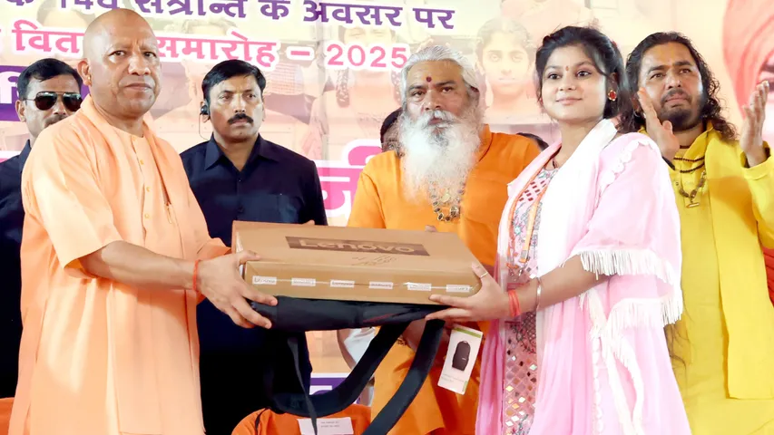 UP News : सीएम योगी ने छात्र-छात्राओं को दिए लैपटॉप, छात्राओं को दी सिलाई मशीन